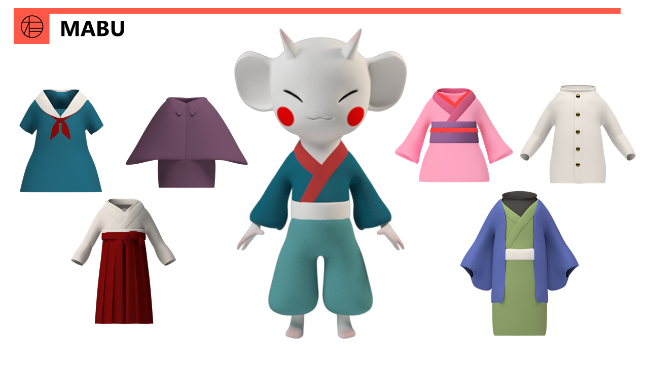 This is a Mabu, your very own customizable sidekick. Upon coming to Oniba, you can create your own Mabu by customizing the eyes, ears, horns, and clothes.