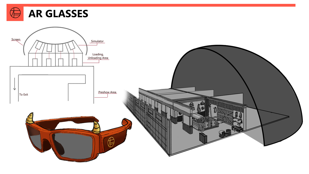 Augmented reality glasses, given to each guest before the ride, will detect the guests' Mabu and project them onto a special screen, making it seem like each guest is being carried on a rickshaw by their own Mabu.