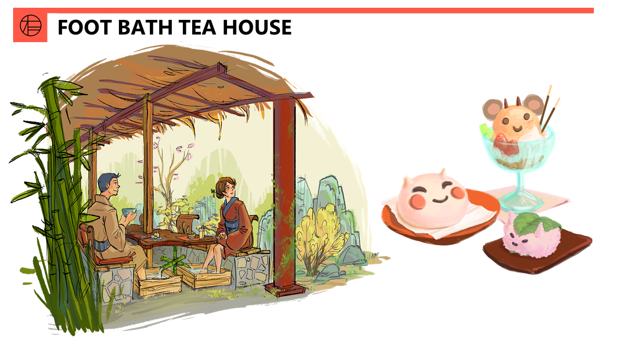 Guests can relax in our footbaths while enjoying Oniba themed sweets made from local Kinugawa ingredients.